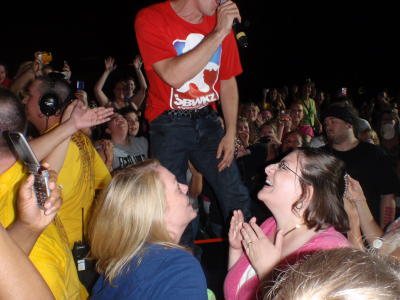 We did have pretty good seats….but in the middle of the concer all these body guards came back with a table and put it right beside Kenny!! Well my friend Danielle and I took Kennys spot and sure enough Jon Knight came out and sand on the table. Kenny’s job was to video and Danielle’s hubbys job was to take pics. It was alot of fun and would probably go again.