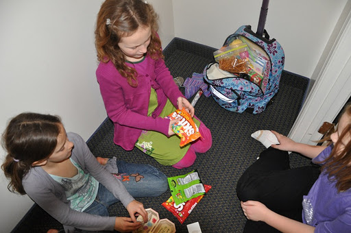 The girls hiding in one of the walk in closets comparing candy stashes for the cruise!!