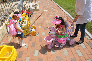 Mia loved the little bikes….many were broken.:-/ We didnt stay outside long. Avah said it was too hot.