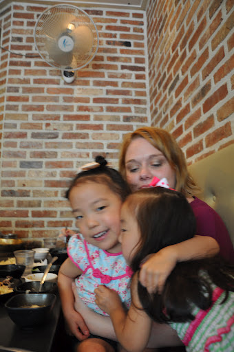 After a couple of hours of visiting, AMSA took us all to dinner. IT was at a traditional Korean restaurant. Other than Avah dumping soup/guk on my lap….and the lovely back wash in my drink…lunch was perfect.:) I have 6 kids..I have something dumped on me every single day.