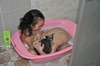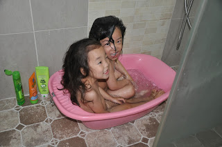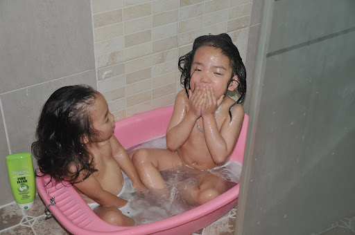 Another opposite….bath time.