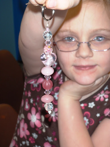 Camye made a beautiful keychain where we learned all sorts of different techniques. Yes her lips are chapped and she wont quit licking them!!