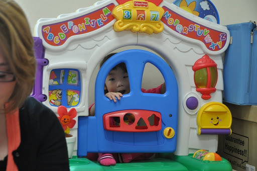 Mia loves her toys! She said Bye, she was going to her house, while we were filling out paperwork!