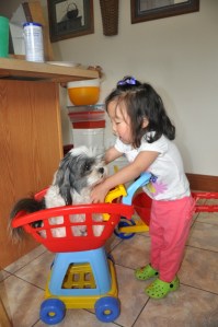Oh yes and she loves pushing Penny in her shopping cart!!
