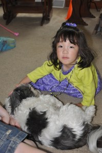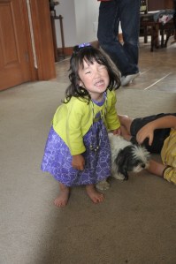 She loves the puppies!!! Actually she loves to drag them by one paw around the room, but it’s a start! She loves squealing and pretending they are chasing her!!