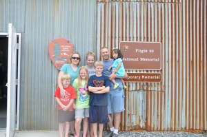 After our fabulous camping trip, we decided to go over to the Flight 93 memorial, which was only about 30 minutes there. On the way there, Kenny asked me if I would like to tell the kids about what happened that morning. I immediately start crying. I cant even talk about it. I can not imagine how the families feel. I didn’t know anyone directly involved in any of it. I am still a basked case over that morning. I am ashamed to say this is our family standing in front of the temporary building for the memorial. We can spend millions of dollars on Casey Anthony, millions on a failed foster system, millions of dollars on gay rights and abortions. This happened almost 10 years ago. Why is this taking so long? Why is the 9/11 memorial not even have restrooms??????