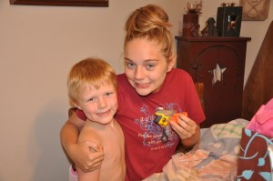 And we couldnt make it through the picture without Mia giving her brother a massage…a random massage????