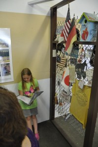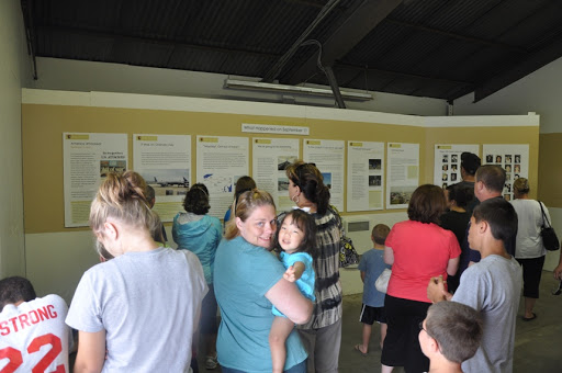 Mia and Mommy inside the memorial reading what happened on that day.