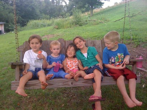 My sister in law and kids came to visit last week. We had alot of fun! Having 9 kids has really made doing things without our hubby’s around a little harder but we manage!! They have just moved back from Okinawa, Japan and hadnt met Mia yet. We went to a fun festival at our co-op church host Calvary Baptist. Mia loved jumping on the bouncy!!! A few of the cousins out swinging on our swing in the yard…:) Austin, Amelia, Mia Grace, Elizabeth and Paul.
