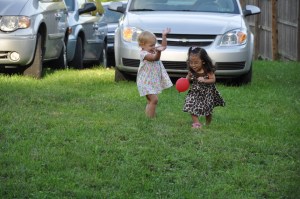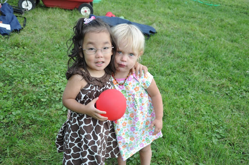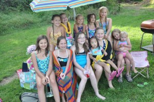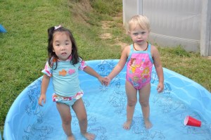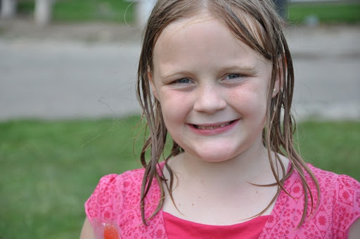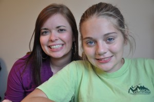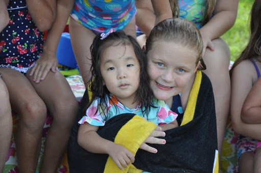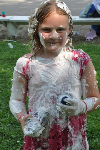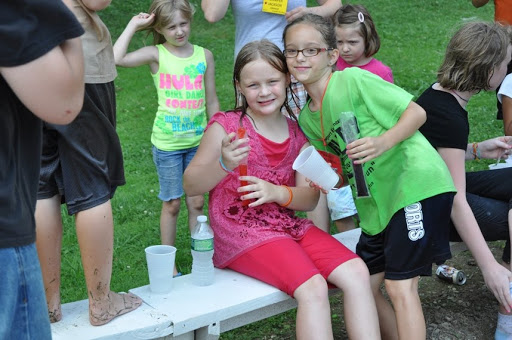 Camye and Bailey (her camp BFF) after the shaving creme was hosed off!!