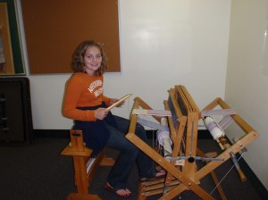 Below, Chloe is getting to use a weaving machine.