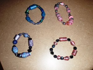 My friend Danielle is very crafty and makes all sorts of beautiful jewerly. She also likes to use odd things to create jewerly and with this craft she used double sided cardstock paper!!!
