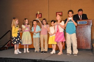 Last but not least, they had “Food Fear Factor”. Only 10 participants, were chosen. Of course, my kids were picked but then 9 kids dropped out when they first saw the food, including my kids. So they asked if any adults would like to join in!! Of course,….Kenny did. He and another contestant both ate raw oysters, beef tongue, beef testicles, white fish, anchovies, a cup of buttermilk, a cup of mineral oil and a LIVE gold fish!!!
