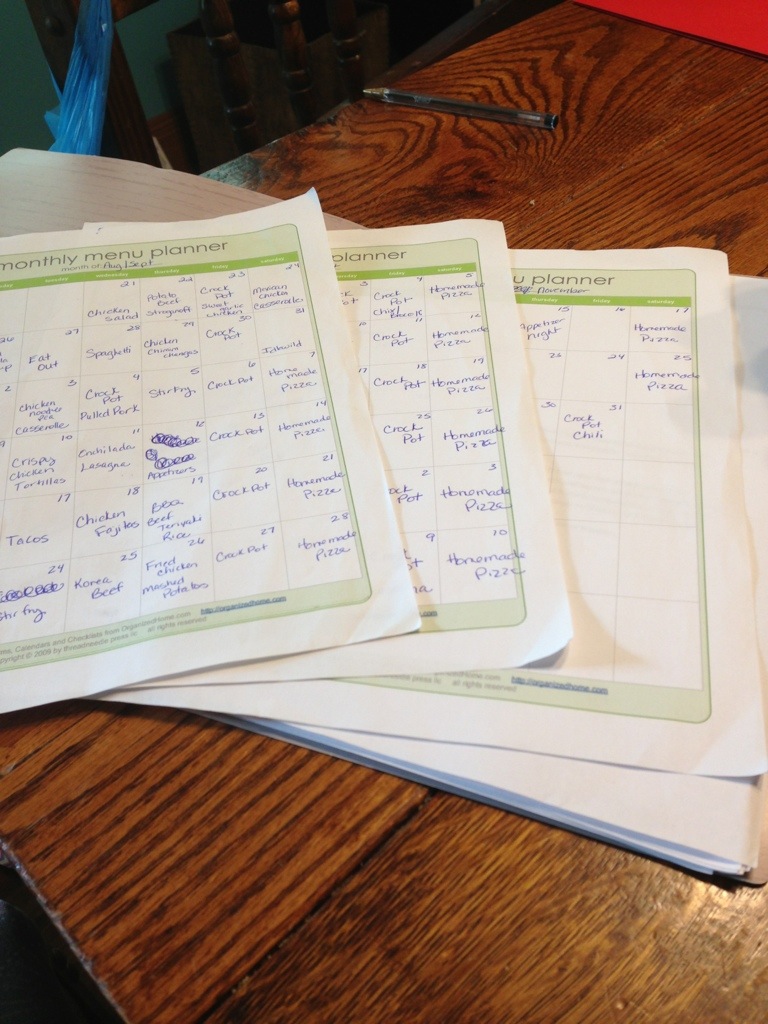 This is the most helpful thing I could to help with my Large Family. I just wrote up a menu plan from August 21- November 30th. I keep all my recipes on my pinterest board FOOD FUN or Gluten/Soy/Dairy/Egg free….is that even possible? I do print some of my recipes to keep in our family binder but typically just bring up my pinterest boards and fix the recipe from that. I even planned nights we needed to eat because of soccer games.